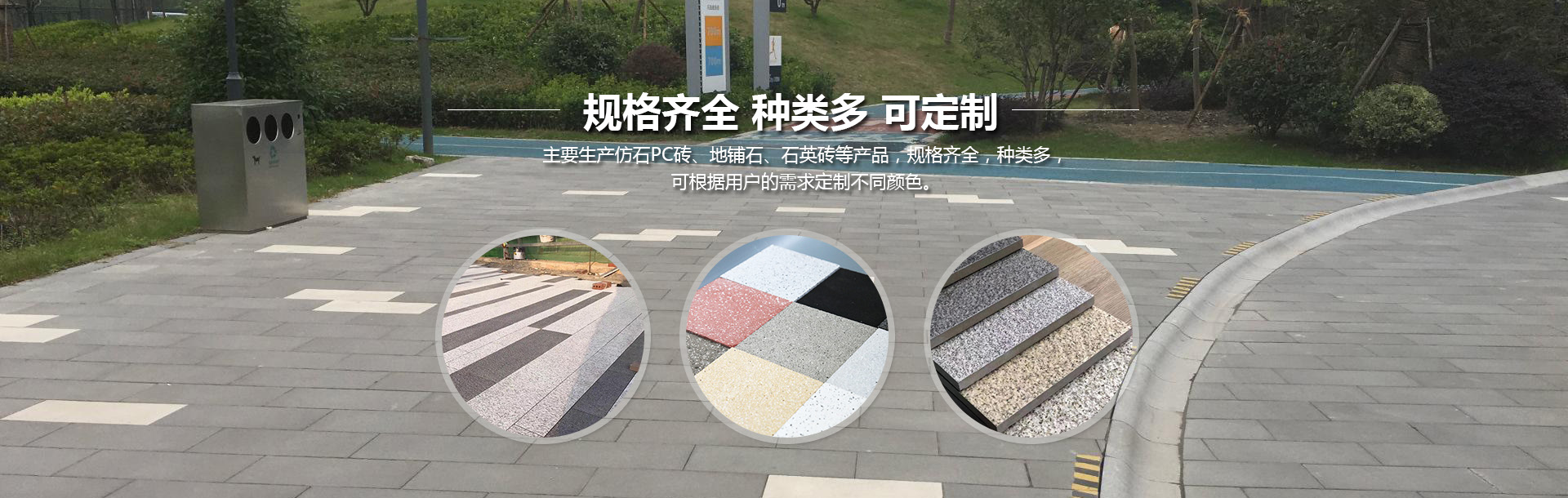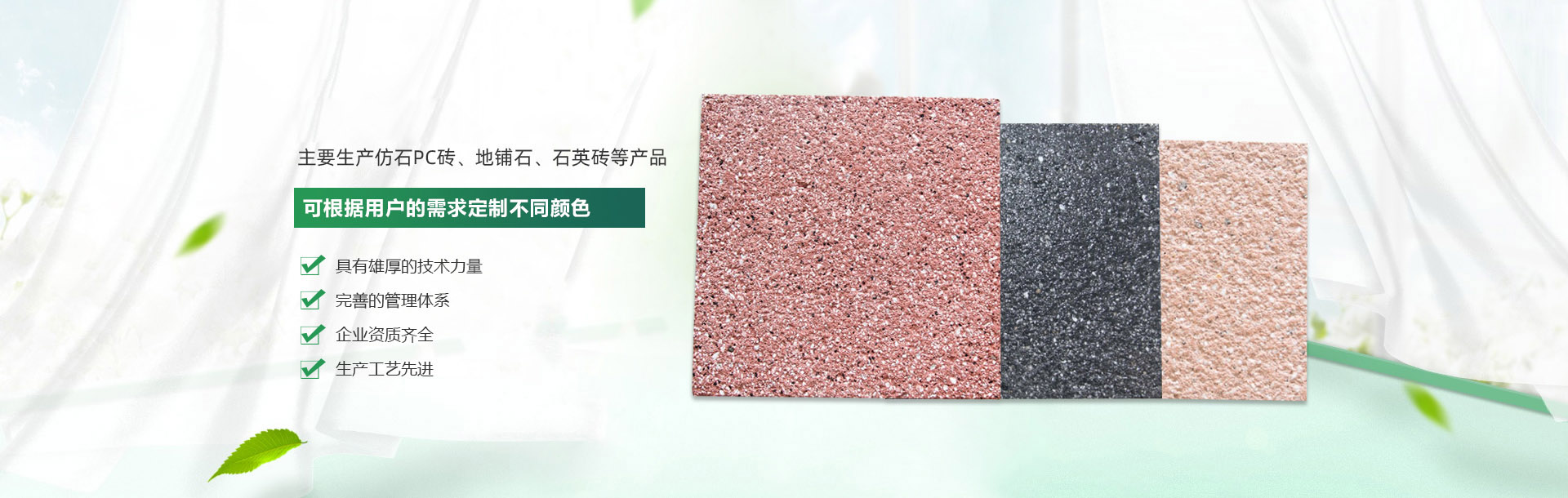 The company mainly produces imitation stone PC bricks, floor paving stones, quartz bricks and other products, with complete specifications, various types, low prices, and can customize different colors according to user needs.